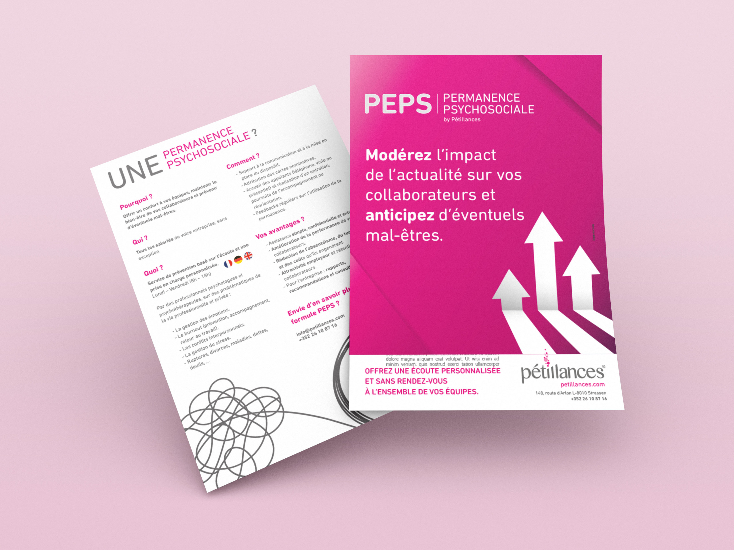 Avec pour objectif de simplifier et vulgariser la compréhension des ses services, PÉTILLANCES a mandaté INPENT pour la création d'une campagne digitale et de supports graphiques en vue de promotionner son service psychosocial. Nos missions :